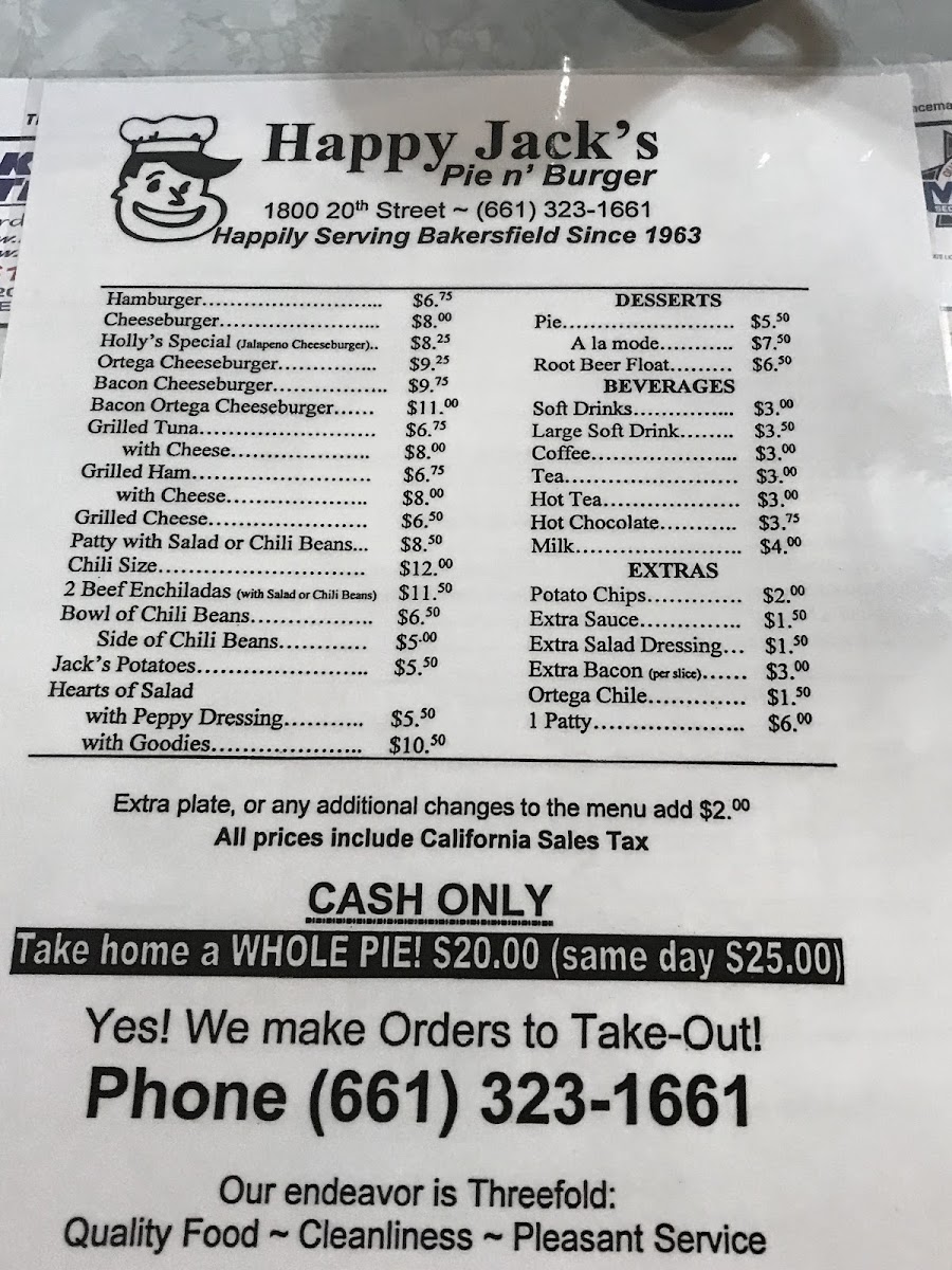 Welcome to Happy Jack's Pie 'n Burger, a cherished diner located in the heart of Bakersfield, CA. Known for its cozy atmosphere and friendly service, this family-owned establishment has been serving up delicious meals for nearly 50 years. The menu features mouthwatering offerings, including juicy burgers with hearty patties that are sure to satisfy any craving.